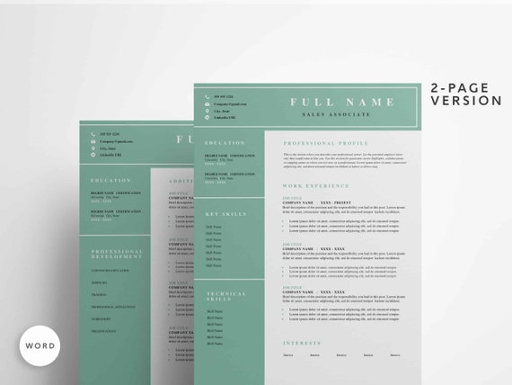 Sales Associate Resume Template Cover Letter Reference Etsy